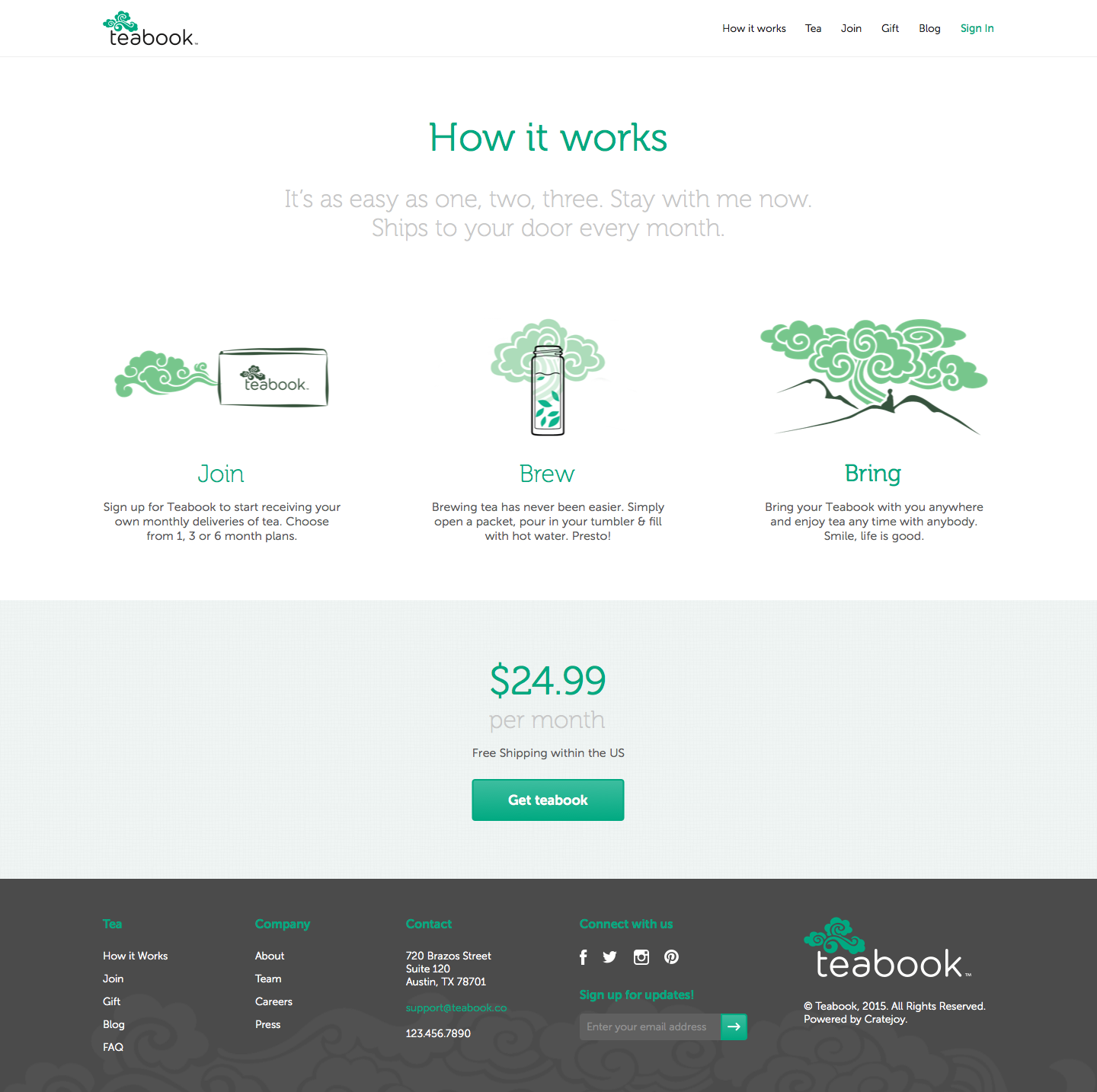 Teabook, intended to bring the simple delight of tea drinking to thoughtful millennials through a subscription. Art direction, iterative design and user experience design for the startup included wireframes, comps, page design, audience research, messaging, copywriting, and outreach.